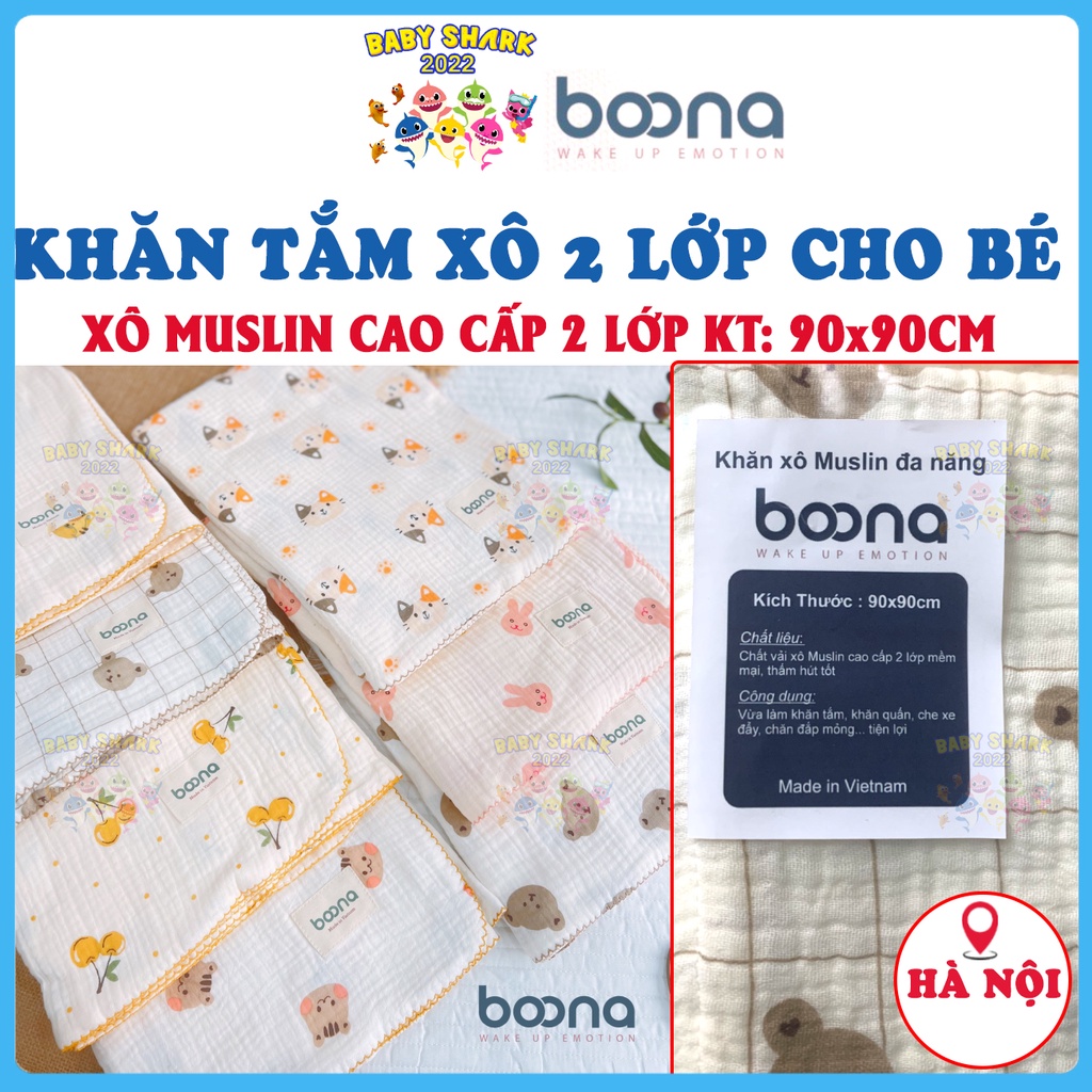 LƯU Ý: Do số lượng mẫu nhiều và thay đổi theo từng đợt hàng về nên Khách hàng muốn lựa chọn mẫu có thể liên hệ shop để biết mẫu đó còn hàng không ạ! Cảm ơn mọi người! Khăn tắm xô Muslin đa năng Boona chính hãng 90x90cm cho bé cho trẻ sơ sinh và trẻ nhỏ với 2 lớp dày d
