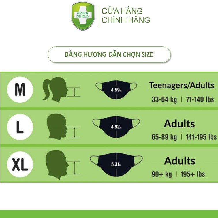 KHẨU TRANG TỪ VẢI SỢI TRE KHÁNG KHUẨN 3 LỚP GREEN SHIELD - Size M - Màu đen Khẩu trang từ vải sợi tre kháng khuẩn 3 lớp đến từ Green Shield được sản xuất theo tiêu chuẩn của BỘ Y TẾ được quy định tại quyết định só 870/QĐ-BYT Cấu tạo đặc biệt với công nghệ 3Shield M-Tech - Lớp ngoài: Làm từ vải sợi tre kháng khuẩn, chống giọt bắn tiếp xúc, kháng nước (*) - Lớp giữa: Vải lọc, kháng khuẩn lên đến 90%, không những thế mà còn có tính năng chống nắng và khả năng ngăn cản tia UV (UV Protection - UPF 50+) - Lớp trong: đây sẽ là màng lọc thoáng khí an toàn, bằng các sợi vải cotton mềm mại tạo cảm giác thoải mái khi sử dụng cả ngày và không gây kích ứng cho da. - Có nẹp ôm sát mũi ngăn chạn khói bụi tối đa (*) Theo kết quả kiểm mẫu trong phòng thí nghiệm theo phương pháp thử AATC 100-2019 Tái sử dụng trong 20 lần giặt mà vẫn đảm bảo an toàn, tiết kiệm và bảo vệ môi trường Thiết kế thời trang với kiểu dáng và kích thước phù hợp với khuôn mặt người dùng (Bảng size tham khảo) Bộ sưu tập với nhiều màu sắc thời trang, bảng màu vô cùng đa dạng (Bảng màu tham khảo) Đừng quên inbox ngay để được tư vấn về các thông số của khẩu trang nha. Giá bán: 29.000 VNĐ/ chiếc - Được đóng gói thành 1 TÚI gồm 1 CHIẾC Hướng dẫn sử dụng lần đầu Giặt sạch khẩu trang bằng xà phòng và phơi dưới ánh nắng mặt trời. Luôn để khẩu trang vào túi zipper của khẩu để bảo vệ khẩu trang khỏi tác nhân bên ngoài. Hãy chuẩn bị từ 3-4 chiếc khẩu trang để thay đổi hằng ngày. Hãy sử dụng khẩu trang vải vải đúng cách - vừa an toàn, vừa tiết kiệm, vừa giảm rác thải y tế. Ưu tiên khẩu trang y tế cho tuyến đầu chống dịch #khautrang #khautrangyte #khautrangchobe #khautrang3d #khautrangxuatkhau #khautrangdep #khautrangcaocap #khautrangchongbui #khautrangchongnang #khautrangkhangkhuan #khautrangyte #khautrang4lop #khautrangvaikhangkhuan #khautrangcaocap #khautrangtot #khautrangytecaocap #khautrangyte3lop #khautrangytekhangkhuan #khautrangvai # khẩutrangvải # khẩutrangkhángkhuẩn #khautrangvai3lop