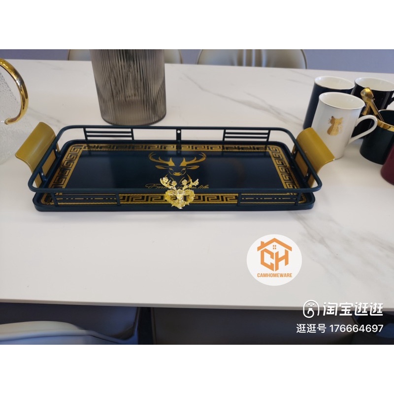 Khay Úp Cốc Hươu Xanh Tay Nắm Mạ Vàng 801 Decor Trang Trí Cam Homeware