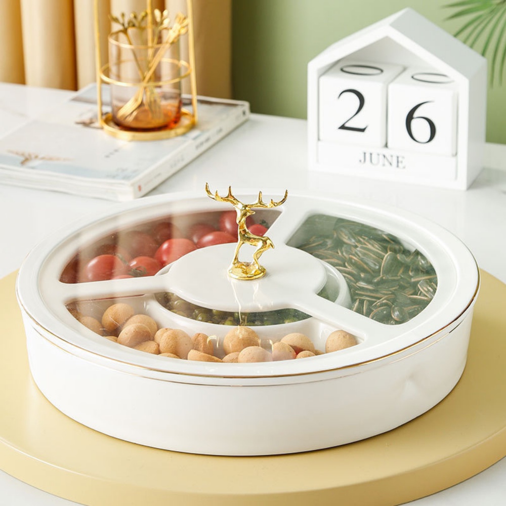 Khay đựng đồ tết họa tiết hươu vàng được làm từ gốm sứ cao cấp- Phong cách Bắc Âu sang trọng