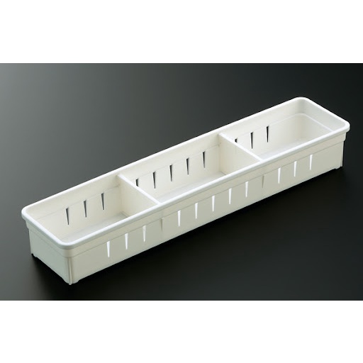 "Tên SP: Khay đựng đồ làm bếp Xuất xứ: Nhật bản SX tại: Inomata Co., Ltd Kamiyuki 204, Naka-ku, Fukushai, Osaka 599-8244 Thành phần: nhựa, KT: 34.8 x 8 x 5cm HDSD: Sử dụng để có thể đặt kéo, con dao trái cây, đũa, thìa, ống hút, vv; Lưu ý khi SD: Tránh va đập mạnh, Để