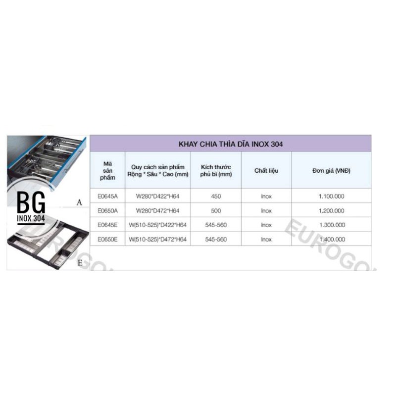❎❎KHAY CHIA THÌA DĨA INOX 304 - THƯƠNG HIỆU EUROGOLD ❌Làm bằng chất liệu inox 304 an toàn, chống han gỉ, chống oxy hóa, độ bền cao. ❎Cấu tạo rộng rãi, độ sâu lòng vừa phải vừa tiết kiệm diện tích, vừa sắp xếp được nhiều loại, nhiều kiểu vật dụng nhà bếp khác nhau từ