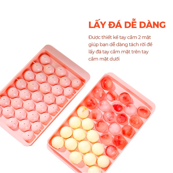 Khay Làm Đá Silicon 33 Viên Tròn To Có Khuôn Có Nắp Đậy Thông Minh Chất Liệu Nhựa PP An Toàn
