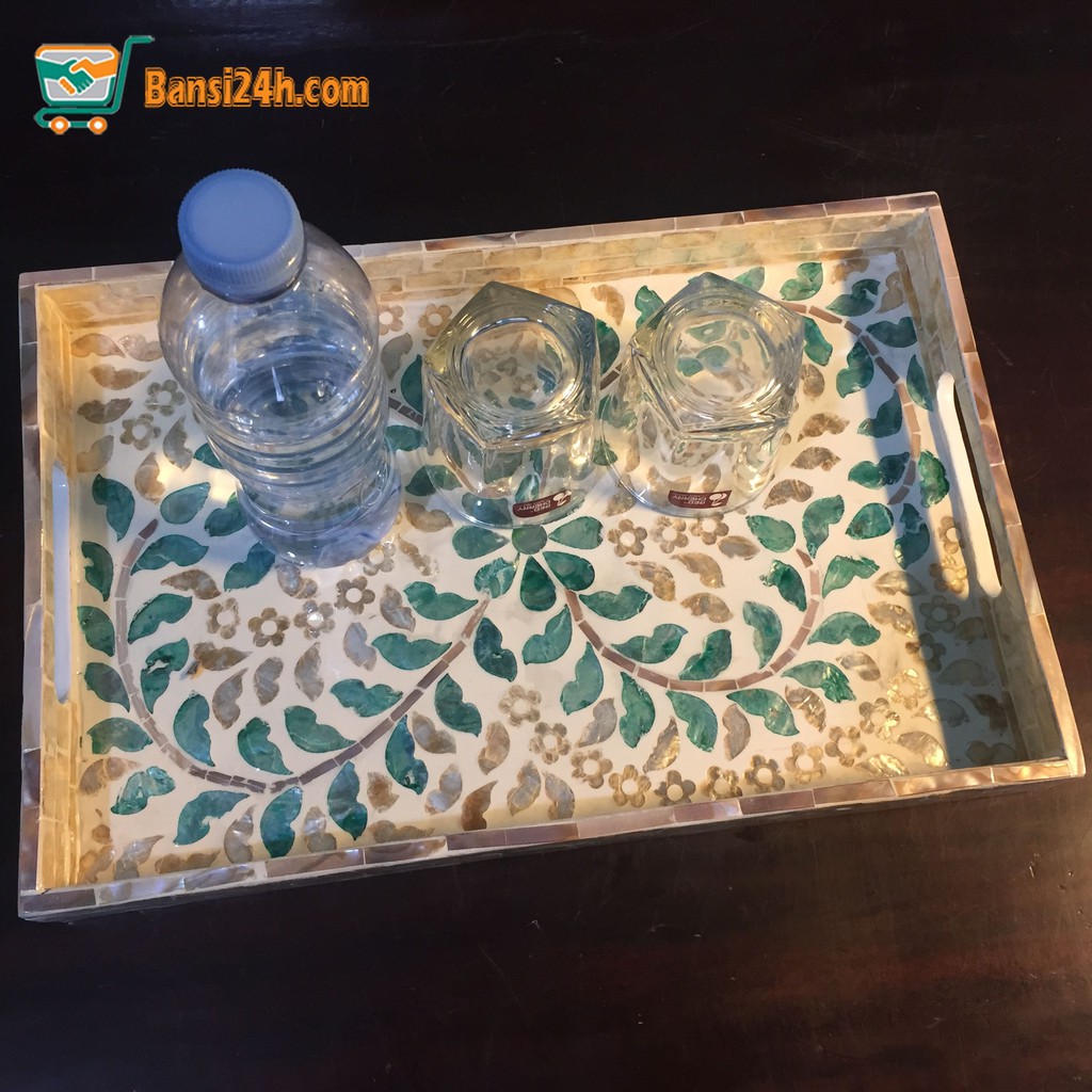 Khay sơn mài, Khay trà, khay cafe cao cấp, hàng xuất khẩu đi USA Khay nhà hàng khách sạn: khay bưng rượu, khay bưng cafe, khay bưng nhà hàng, khay bưng đồ... Kích thước:L: 39x25xH4.5 Cm Họa tiết như ảnh Chất liệu: Gỗ phủ Sơn mài khảm trai Khay sơn mài xu