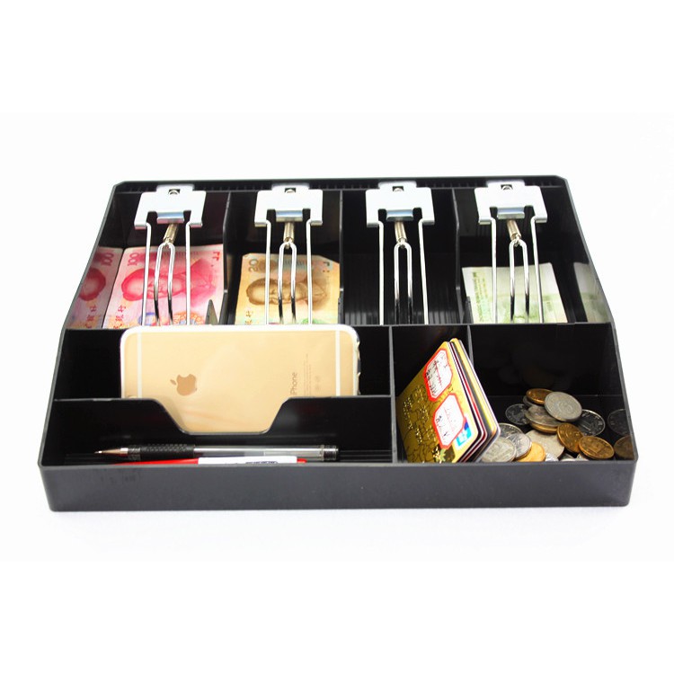 Thông tin sản phẩm: Kích thước: 31.8x27.5x6cm Chất liệu: Nhựa ABS, tay cầm bằng inox bền bỉ Màu sắc: Đen Mô tả: gồm 4 ngăn kẹp chính và 4 ngăn phụ Dùng để phân loại tiền cho quầy thu ngân để dễ dàng thối khách, trả lại tiền thừa cho khách ----------------------------💖