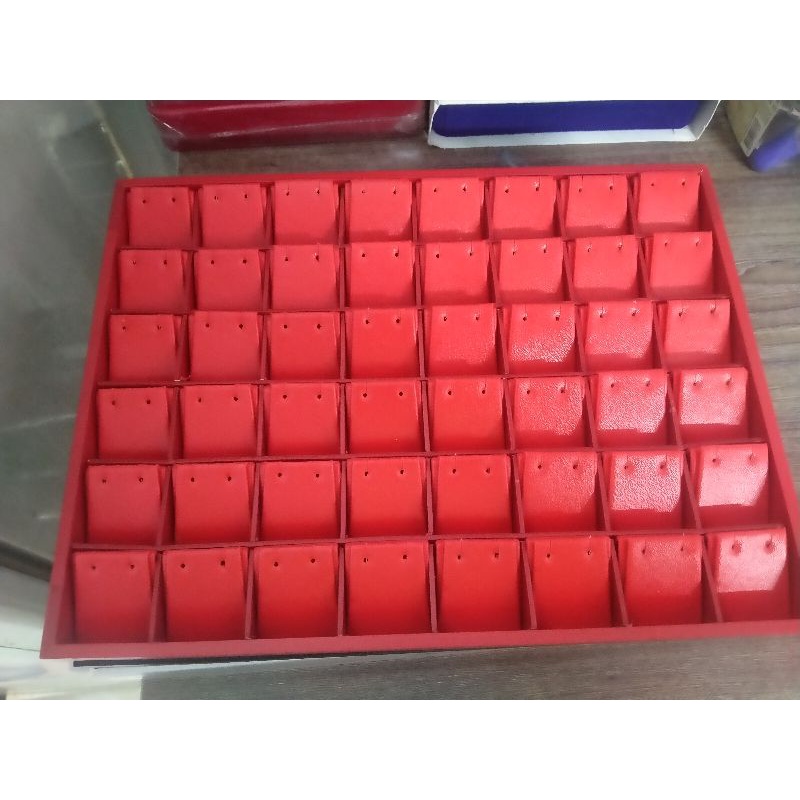 Mâm trưng bông tai bằng da màu đen, trắng, đỏ khay thích hợp trưng đc tất cả các loại bông nụ và bông lỡ,kể cả bông khoen chất liệu simili kích cỡ 24.32*2 Viền gỗ tạo khung cứng dễ dàng di chuyên