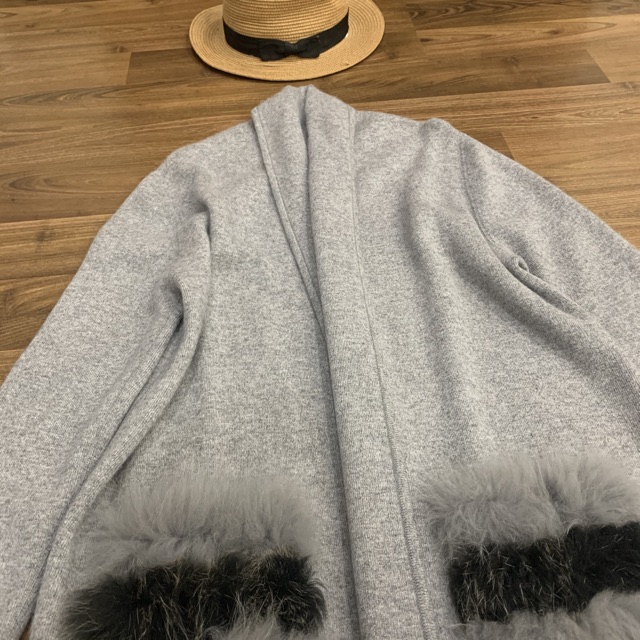 Em áo khoác cardigan dáng dài màu ghi siêu Tây phối lông sang chảnh lắm na các gái!!! Em này siêu xinh, siêu mới đẹp từng centimet na các gái! Em này dáng suông rộng freesize nên các gái dưới 60kg bon chen thoải mái na! Giá 450k Shop chuyên hàng 2hand tuyển chọn, mẫu mã độc lạ, độ mới cao!