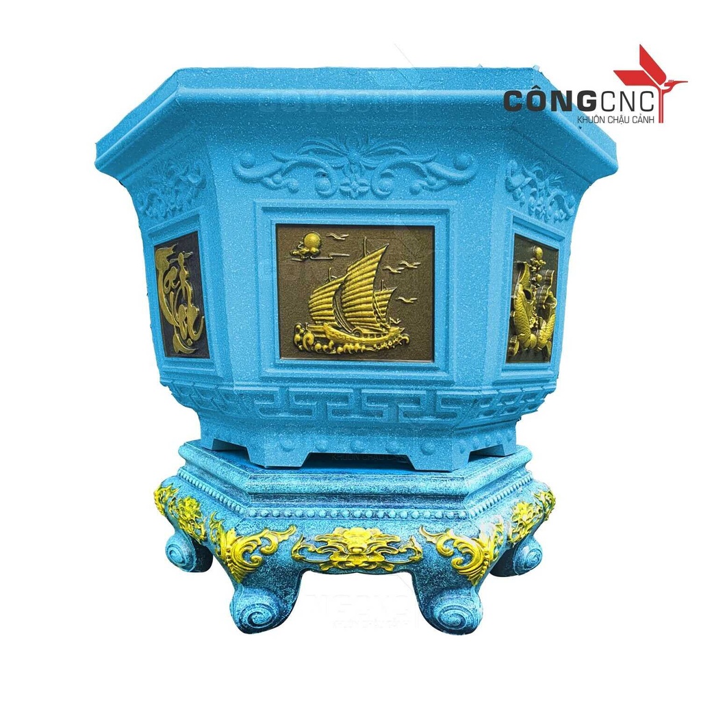 Khuôn Chậu Cảnh ABS Lục Giác 60 Sen - Phúc Lộc Thọ- Cá Chép- Tài Lộc + Khuôn Chân Đôn Kỷ đổ úp đáy 60 - LG60SPLTDK