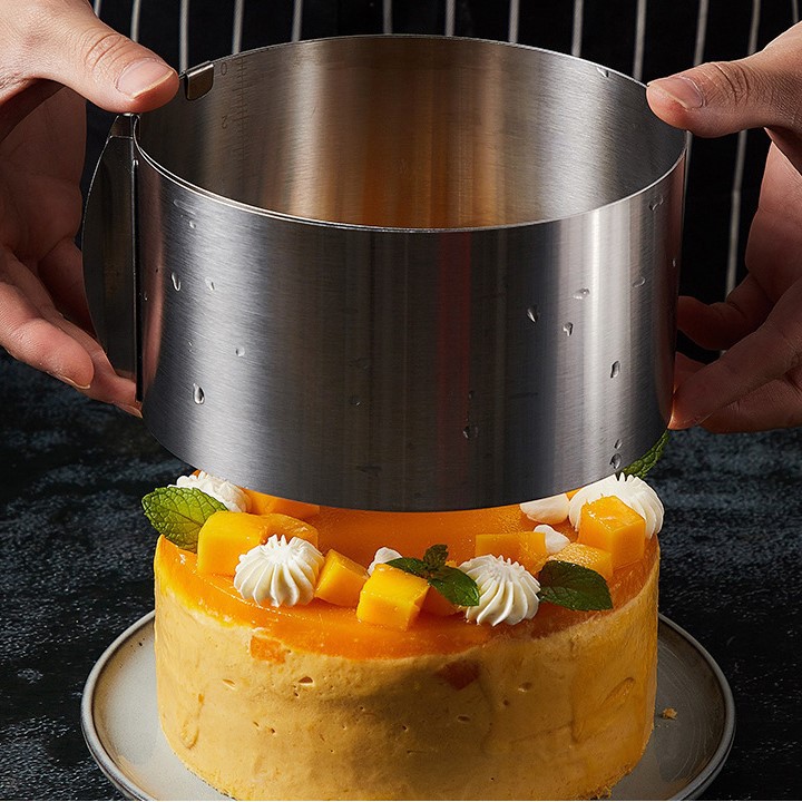 Khuôn ring không đáy có thể chỉnh size theo ý muốn Cấu tạo bằng thép không rỉ Size : 16cm-30cm Mô tả Sản phẩm: Được làm bằng thép carbon phủ lớp chống dính Teflon, chất lượng tốt, sơn không dễ bong tróc, chắc chắn và bền bỉ, là loại khuôn tốt để làm bánh ! 👩🍳 MY FA
