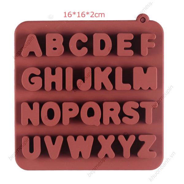 Khuôn silicon 26 chữ cái in hoa Ngoài những hình trang trí bánh như cây cối, xe cộ, nhà cửa thì chữ viết trên bánh cũng rất quan trọng. Khuôn silicon chữ thường giúp tạo ra những mẫu chữ 4D. Giúp trang trí bánh thêm sinh động vừa truyền tải nội dung của chiếc bánh m