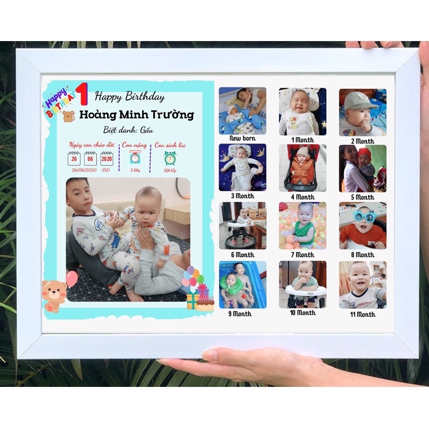 Khung ảnh thiết kế mừng sinh nhật thôi nôi cho bé 1 tuổi