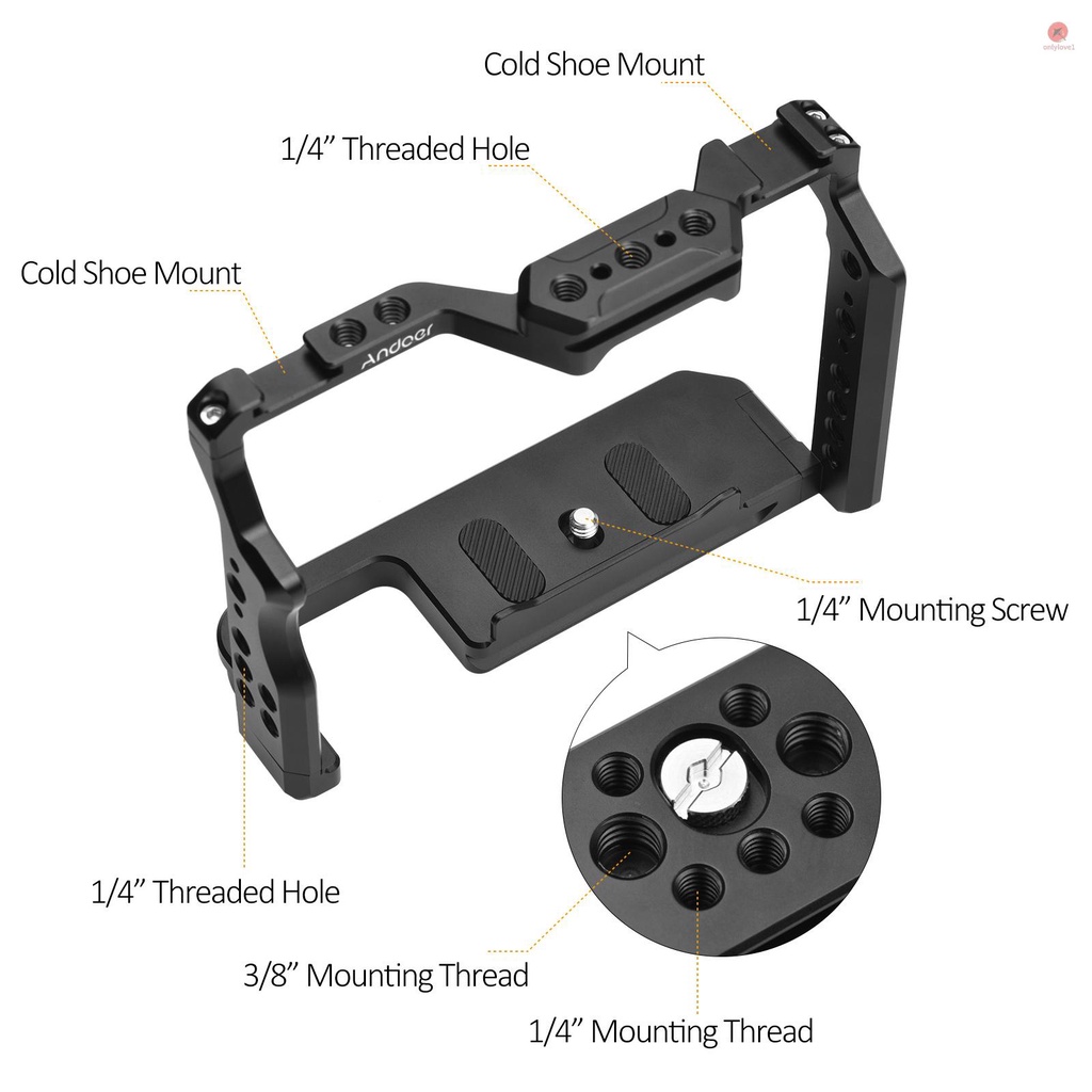Khung Máy Ảnh Andoer Bằng Hợp Kim Nhôm 1 / 4 Inch Thay Thế Chuyên Dụng Cho A7IV / A7III / A7II / A7R III / A7R III / A7R II / A7S II / A7S II