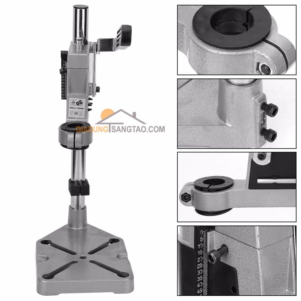 --> Lưu ý: SẢN PHẨM KHÔNG BAO GỒM MÁY KHOAN VÀ Ê TÔ KHOAN BÀN Chân đế khoan bàn biến máy khoan tay thành máy khoan bàn Nhanh chóng biến một chiếc khoan cầm tay trở thành một máy khoan bàn mini cực kỳ đơn giản và nhanh gọn. Giúp người dùng sửa chữa, gia công, chế tác