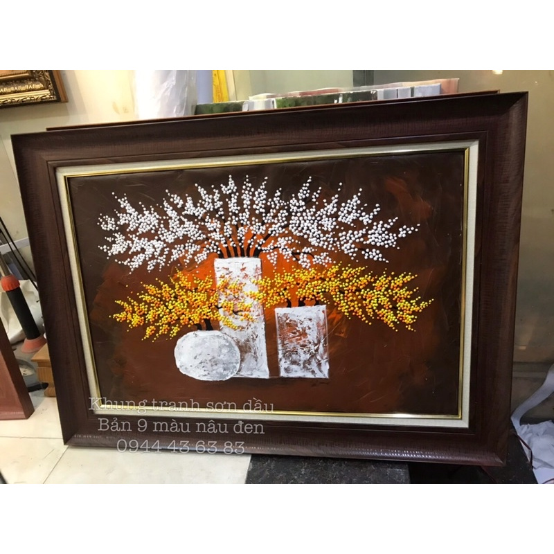 Khung tranh Sơn Dầu Số Hoá Màu sắc : vàng đồng hoa văn, vàng, vân gỗ, nâu đen, vàng đen, bạc xanh Kích thước: 60x120, 75x120, 60x140, 80x120, 70x140, 50x150, 60x180, 80x160, 90x180… 1 chiếc khung bao gồm: Khung bằng nhựa composite theo kích thước. Móc treo dọc và ngang, vít, bọ bắt tranh phần gỗ tranh với khung. Bản khung 9cm như hình ( chưa bao gồm bo, thêm Bo vui lòng liên hệ shop) Vít, bọ tranh và quai treo được mạ đồng nên có tuổi thọ cao hơn loại thường. Nước sơn F1 với công nghệ châu âu giúp cho khung bền màu, sáng mịn. Hình ảnh trên được chụp thật không chỉnh sửa. Chủng loại khung đa dạng, mẫu mã phong phú, bản khung từ 2cm đến 12 cm phù hợp với nhiều loại tranh Đt : 0944 43 63 83 Đc: số 83 ngõ 521 trương định - hoàng mai - hà nội Hoặc để lại điện thoại chúng tôi sẽ tư vấn miễn phí. #tranhsohoa #tranhtreotuong #tranhsondau #tranhtutomau #tutomau