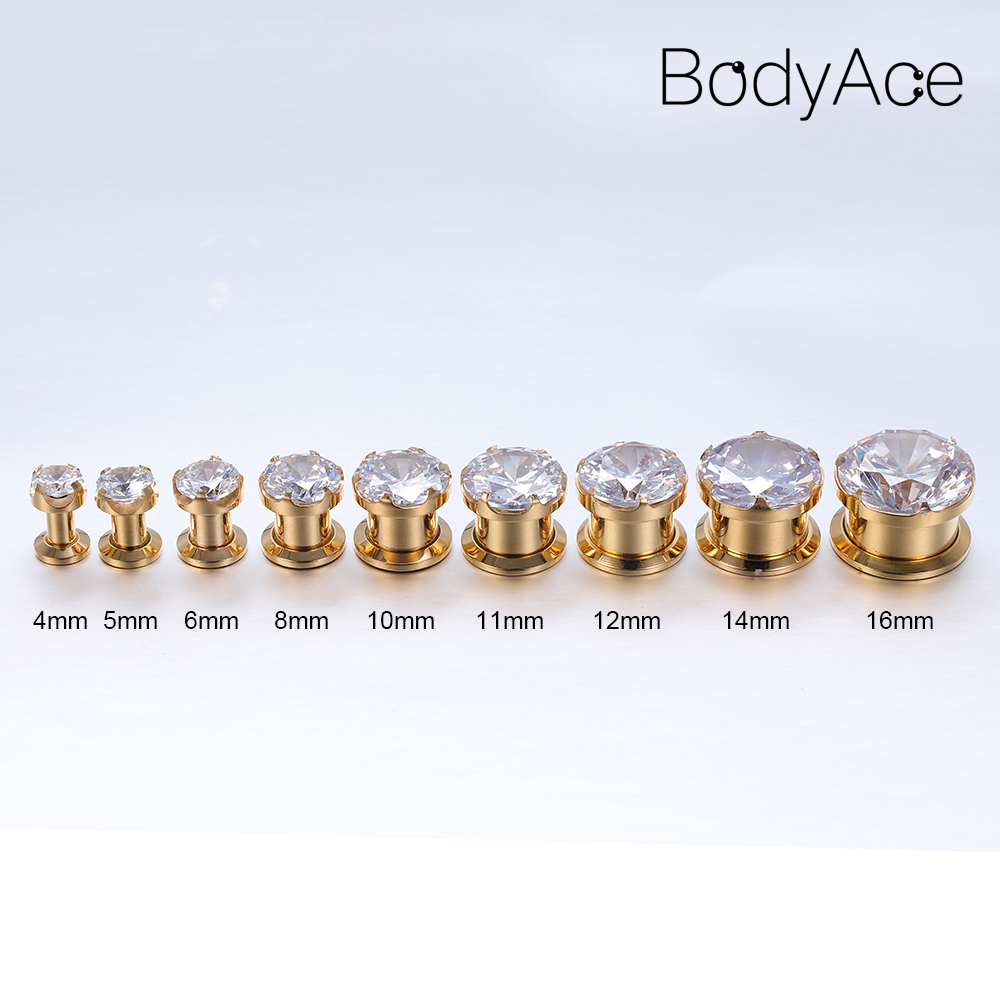 1. Chất liệu: Bạc / Đen / Mạ vàng Thép không gỉ 316L + Đá quý Zirconia khối AAA. 2. Gleam và tỏa sáng cơ thể xỏ lỗ tai Tunnel Plugs trang sức. 3. Máy đo: 6g (4mm), 4g (5mm), 2g (6mm), 0g (8mm), 00g (10mm), 7/16 "(11mm), 1/2 "(12mm), 9/16" (14mm), 5/8 "(16mm), Xin vui
