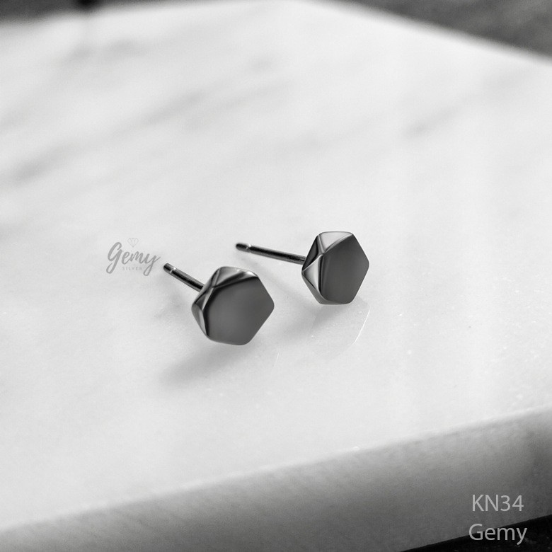 Khuyên tai nam bạc 925 màu đen lục lăng đơn giản, unisex | GEMY SILVER KN34