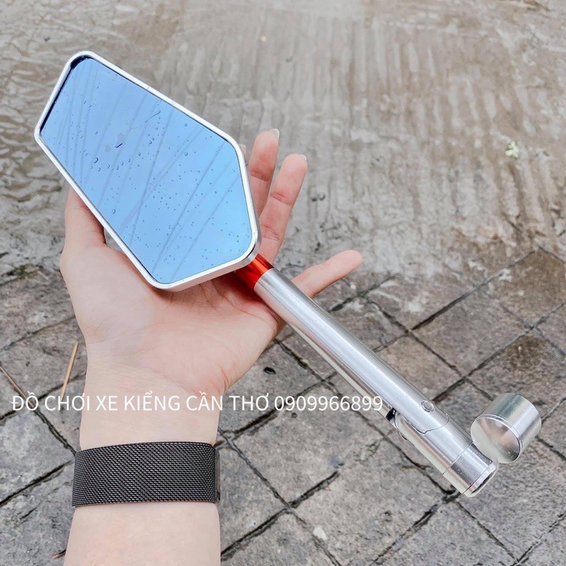 Kiếng iPhone xéo về hàng👍 Cnc đẹp xuất sắc, mặt kiếng to quan sát rõ, phù hợp với anh chị gắn kiếng dùng để xem, chứ ko phải trang trí😂 ✅ Bạc là màu đẹp nhất, dùng lâu ko xún màu, ko rung mặt kính. Thế kiếng 2 tư thế lên xe, gập ra vào thoải mái ko sợ ôm cạ trầy đâu ạ