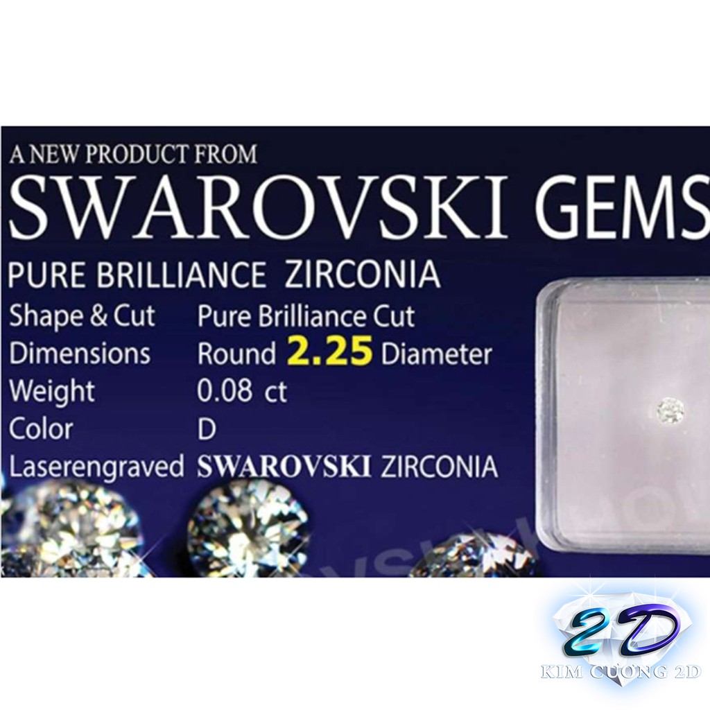 ▪️ Giác cắt theo chuẩn kim cương - Diamond Cut 57 giác ▪️ Kích thước (đủ size): 2LY, 2.2LY, 2.5LY, 2.7LY, 3LY ▪️ Màu sắc: trắng (nước D) ▪️ Xuất xứ: Cộng hòa Áo ▪️ Bảo hành độ sáng: 5 năm ▪️ Độ cứng bền ▪️ Khắc laser độc quyền thương hiệu Swarovski lên bề mắt đá ▪️ Đí