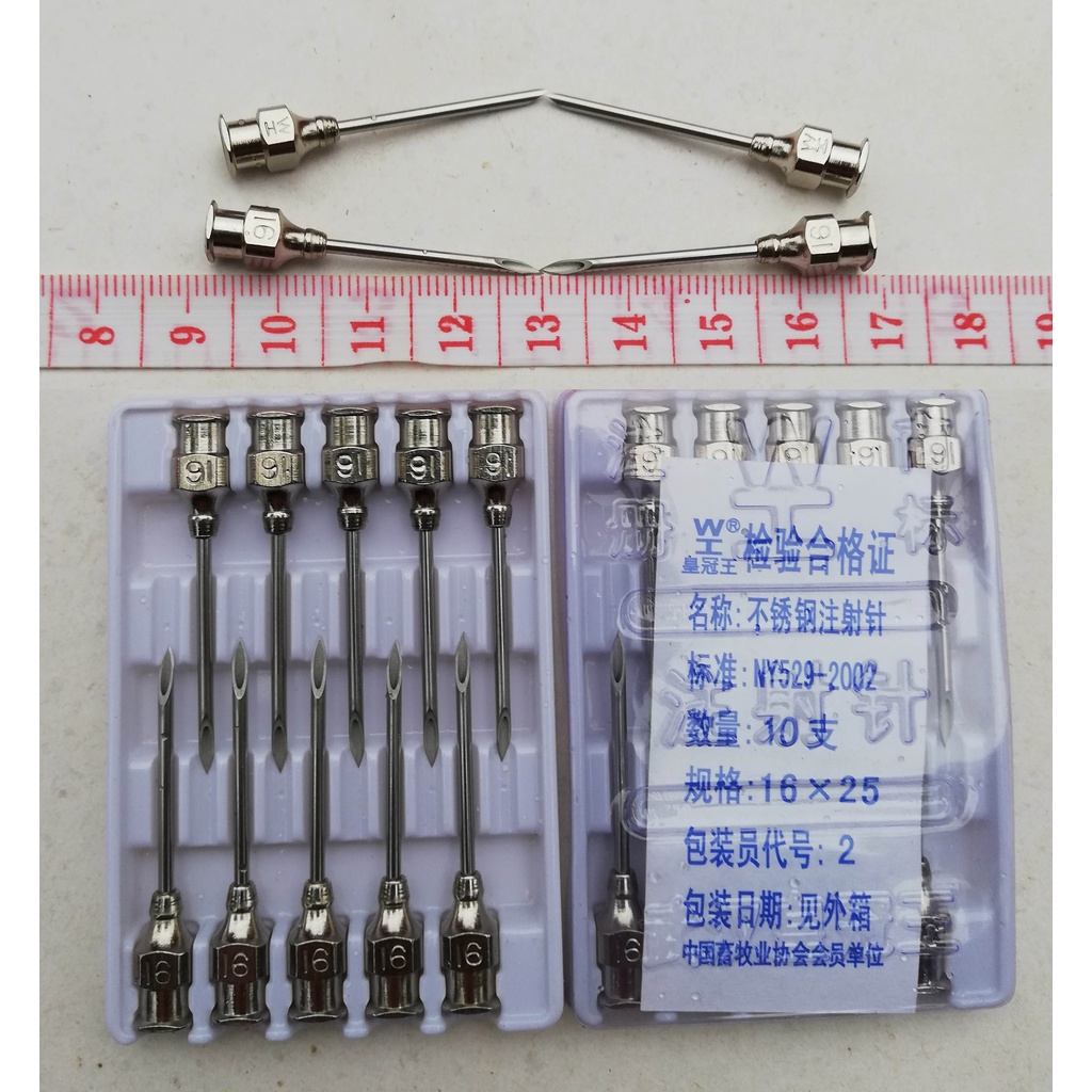 Kim tiêm inox dùng trong thú y, Dùng để tiêm gia súc, gia cầm, chó, mèo... Kim vương miệng các Size 7*13; 9*15; 12*20; 16*25; 16*38 - Đóng gói: 10 chiếc/1 vỉ ; - Kim bằng Inox không sét, gỉ, kích cỡ chính xác - Có thể tái sử dụng bằng cách luộc với nước sôi. - K