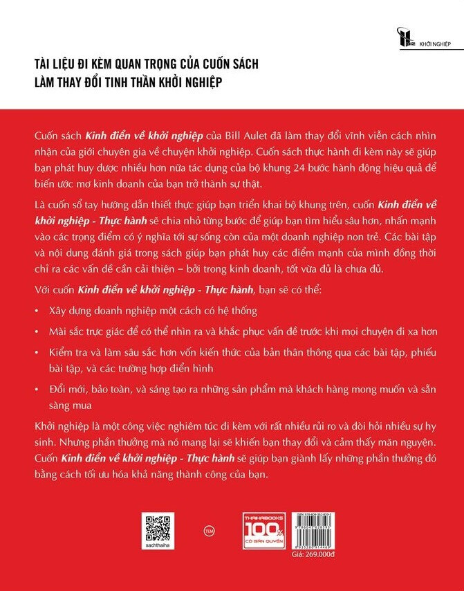 Cuốn sách Kinh Điển Về Khởi Nghiệp - Thực Hành đã đặt nền nóng cho một phương pháp giáo dục chặt chẽ nhưng thiết thực trong hoạt động đào tạo tinh thần khởi nghiệp đổi mới sáng tạo. Về cơ bản, cuốn sách đã thay đổi bản chất của giáo dục tinh thần khởi nghiệp từ phương pháp kể chuyện sang sử dụng hộp công cụ và khung hệ thống. Tuy nhiên, việc gói gọn toàn bộ những điều đó trong một cuốn sách hơn 300 trang là điều không tưởng. Vì thế cuốn sách Kinh điển về khởi nghiệp – Thực hành ra đời nhằm giúp độc giả dễ dàng ứng dụng được 24 Bước lý thuyết. Với cuốn Kinh điển về khởi nghiệp – Thực hành, bạn sẽ có thể: Xây dựng doanh nghiệp một cách có hệ thống Mài sắc trực giác để có thể nhìn ra và khắc phục vấn đề trước khi mọi chuyện đi xa hơn Kiểm tra và làm sâu sắc hơn vốn kiến thức của bản thân thông qua các bài tập, phiếu bài tập, và các trường hợp điển hình Đổi mới, bảo toàn, và sáng tạo ra những sản phẩm mà khách hàng mong muốn và sẵn sàng mua Khởi nghiệp là một công việc nghiêm túc đi kèm với rất nhiều rủi ro và đòi hỏi nhiều sự hy sinh. Nhưng phần thưởng mà nó mang lại sẽ khiến bạn thay đổi và cảm thấy mãn nguyện. Cuốn sách Kinh điển về khởi nghiệp của Bill Aulet ra mắt trước đó đã làm thay đổi vĩnh viễn cách nhìn nhận của giới chuyên gia về chuyện khởi nghiệp. Cuốn sách “Kinh điển về khởi nghiệp - Thực hành” đi kèm này không thể thay thế cho cuốn Kinh điển về khởi nghiệp mà là một tài liệu bổ sung. Nó như là cuốn sổ tay hướng dẫn thiết thực giúp bạn triển khai bộ khung trên, cuốn Kinh điển về khởi nghiệp – Thực hành sẽ chia nhỏ từng bước để giúp bạn tìm hiểu sâu hơn, nhấn mạnh vào các trọng điểm có ý nghĩa tới sự sống còn của một doanh nghiệp non trẻ. Các bài tập và nội dung đánh giá trong sách giúp bạn phát huy các điểm mạnh của mình đồng thời chỉ ra các vấn đề cần cải thiện - bởi trong kinh doanh, tốt vừa đủ là chưa đủ. Hy vọng rằng bạn sẽ luân phiên vận dụng cuốn Kinh điển về khởi nghiệp và cuốn sách thực hành này để hiểu sâu hơn từng bước, phát huy được nhiều hơn nữa tác dụng của bộ khung 24 bước hành động hiệu quả để biến ước mơ kinh doanh của bạn trở thành sự thật. Mục lục sách Kinh Điển Về Khởi Nghiệp - Thực Hành Lời nói đầu Giới thiệu Canvas Kinh điển về khởi nghiệp Bước 0: Tôi bắt đầu bằng cách nào? liệu tôi có nên làm vậy? Bước 1: Phân khúc thị trường Bước 2: Lựa chọn thị trường tiền tiêu Bước 3: Phác họa chân dung người dùng cuối cho thị trường tiền tiêu Bước 4: Ước tính tổng thị trường khả dụng (tam) cho thị trường tiền tiêu Bước 5: Thiết lập chân dung khách hàng cho thị trường tiền tiêu Bước 6: Tình huống sử dụng vòng đời sản phẩm Bước 7: Mô tả tổng quát sản phẩm Bước 8: Lượng hóa đề xuất giá trị sản phẩm Bước 9: Nhận diện 10 khách hàng tiếp theo Bước 10: Xác định yếu tố cốt lõi Bước 11: Xác định vị thế cạnh tranh Bước 12: Xác định đơn vị ra quyết định của khách hàng (dmu) Bước 13: Xây dựng quy trình thu hút khách hàng trả tiền Bước 14: Ước tính quy mô tổng thị trường khả dụng (tam) cho các thị trường tiếp theo Bước 15: Tạo lập mô hình kinh doanh Bước 16: Xác định khung giá Bước 17: Tính toán giá trị trọn đời của một khách hàng Bước 18: Xây dựng quy trình bán hàng Bước 19: Tính toán chi phí thu hút được khách hàng (coca) Bước 20: Xác định các giả định then chốt Bước 21: Kiểm nghiệm các giả định then chốt Bước 22: Xác định sản phẩm kinh doanh khả thi tối thiểu (mvbp) Bước 23: Chỉ ra rằng “khách hàng sẽ mua sản phẩm của bạn vì họ cần” Bước 24: Xây dựng kế hoạch phát triển sản phẩm Phụ lục ngoài 24 Bước Đáp án Giá sản phẩm trên Tiki đã bao gồm thuế theo luật hiện hành. Bên cạnh đó, tuỳ vào loại sản phẩm, hình thức và địa chỉ giao hàng mà có thể phát sinh thêm chi phí khác như phí vận chuyển, phụ phí hàng cồng kềnh, thuế nhập khẩu (đối với đơn hàng giao từ nước ngoài có giá trị trên 1 triệu đồng).....