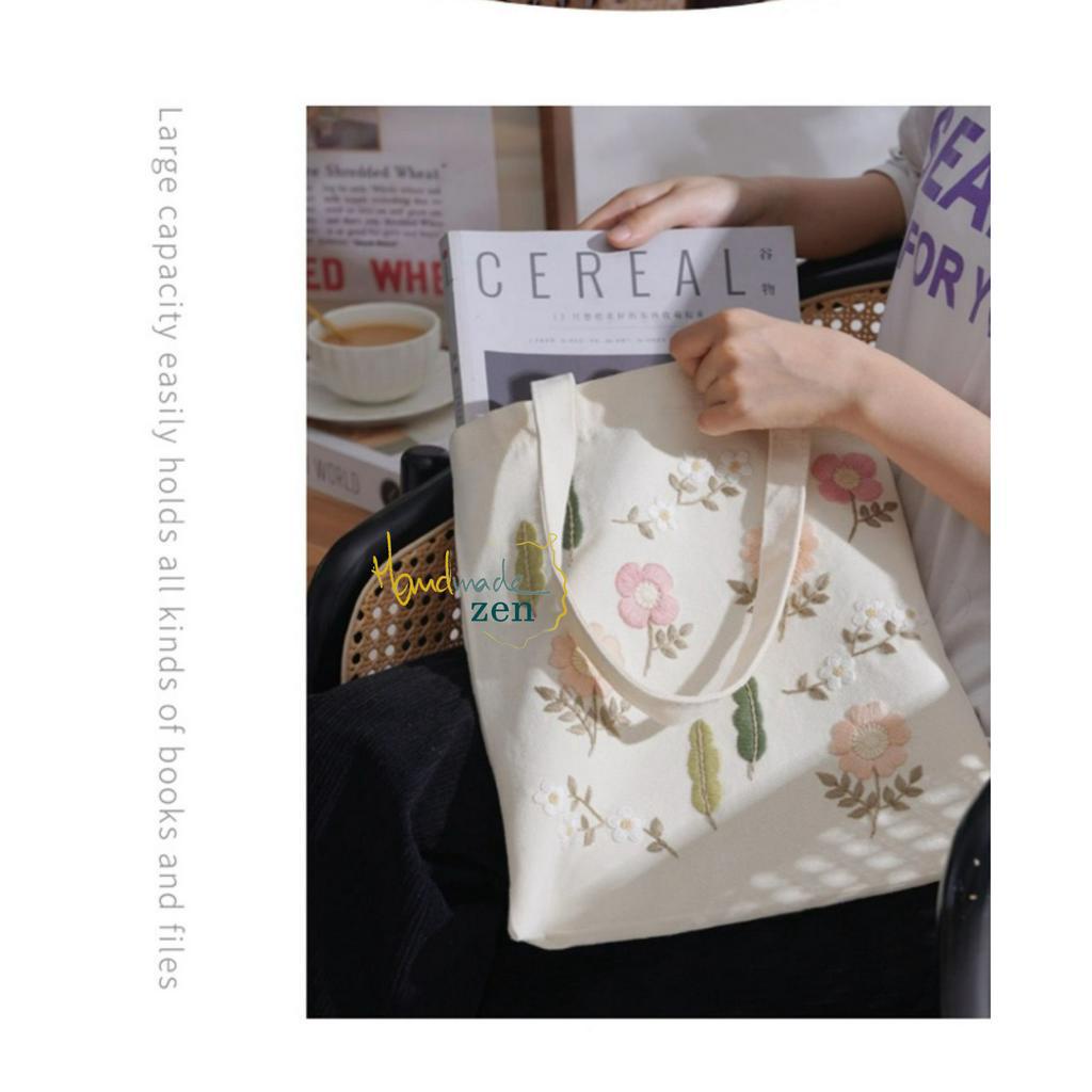 Kit tập thêu cơ bản DIY - Túi Vải TOTE DÂY QUAI thêu tay HOA CỎ - KIT TỰ BẠN THÊU TAY THỦ CÔNG - ZEN HANDMADE