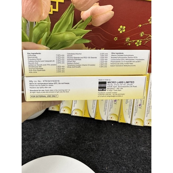 Kojivit Plus Gel là cách an toàn nhất để làm sáng màu da giảm thâm ngăn chặn sắc tố ❤️ sản phẩm chứa axit Kojic dipalmitate, Arbutin, chiết xuất dâu tằm, chiết xuất hạt nho, Allantoin, axit Glycolic và Vitamin E với chất chống nắng tích hợp. Tất cả các thành phần này hoạt động cùng nhau để ngăn chặn các sắc tố melanin và giúp mang lại hiệu quả làm sáng da Lợi ích chính: 1. Trong khi hầu hết các sản phẩm làm sáng da có chứa axit kojic, Kojivit có chứa axit kojic dipalmitate, có hiệu quả hơn nhiều so với axit kojic đơn giản, vì vậy nó mang lại hiệu quả rất nhanh và kết quả hiệu quả, chỉ có thể nhìn thấy ngay từ lần sử dụng đầu tiên. 2. Chiết xuất hạt nho rất giàu flavonoid, chúng hỗ trợ trong việc duy trì độ đàn hồi của da. 3. Glycolic Acid cải thiện vẻ ngoài của da cũng như làm mờ dần các vết thâm do mụn. 4. Arbutin được coi là hợp chất làm trắng da an toàn và hiệu quả nhất, cho thấy làm trắng da an toàn và nhanh chóng. 5. Chiết xuất dâu tằm rất hiệu quả để làm trắng da và giúp thúc đẩy quá trình phục hồi da 6. Octinoxate là một chất chống nắng để ngăn chặn tình trạng sạm da thêm từ tia UVB. 7. Vitamin E là một chất chống oxy hóa mạnh, bảo vệ da khỏi tác hại của tia UV. Đồng thời cải thiện kết cấu da và hỗ trợ dưỡng ẩm. Cách sử dụng: Lấy một lượng nhỏ kem thoa đều lên mặt theo chuyển động tròn cho đến khi kem biến mất và khô hẳn. Sử dụng kem này mỗi khi bạn rửa mặt để nhận thấy hiệu quả rõ rệt.