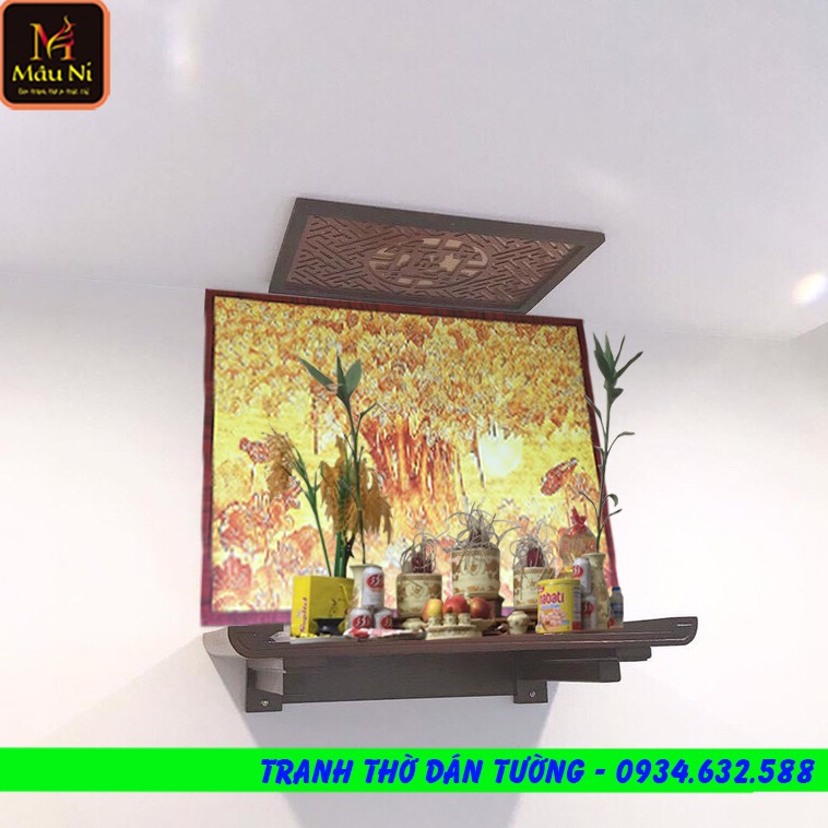 - kt 61cmx81cm - Cây bồ đề - dán vách thờ, bàn thờ, tượng thờ tranh trúc chỉ in MÂU NI