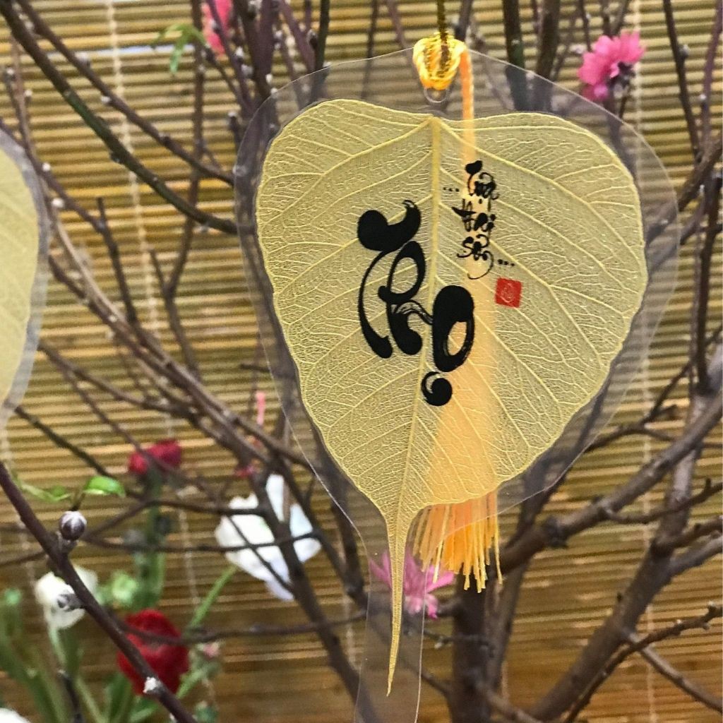 Lá Bồ Đề Cầu Bình An, May Mắn in Hình PHật, Chữ Thư Pháp