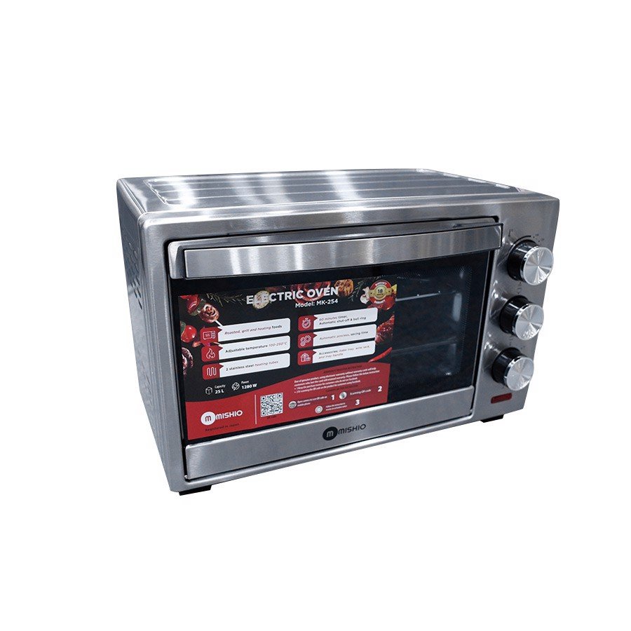 Thông tin chi tiết về lò nướng điện vuông vỏ inox Mishio MK254 (25 lít) Mishio MK254 có vỏ lò làm từ inox vô cùng sáng bóng, chống han gỉ, độ bền cao, cứng cáp. Lò nướng điện Mishio có dung tích 25 lít phù hợp sử dụng cho mọi gia đình. Lò nướng thùng có thể nướng được