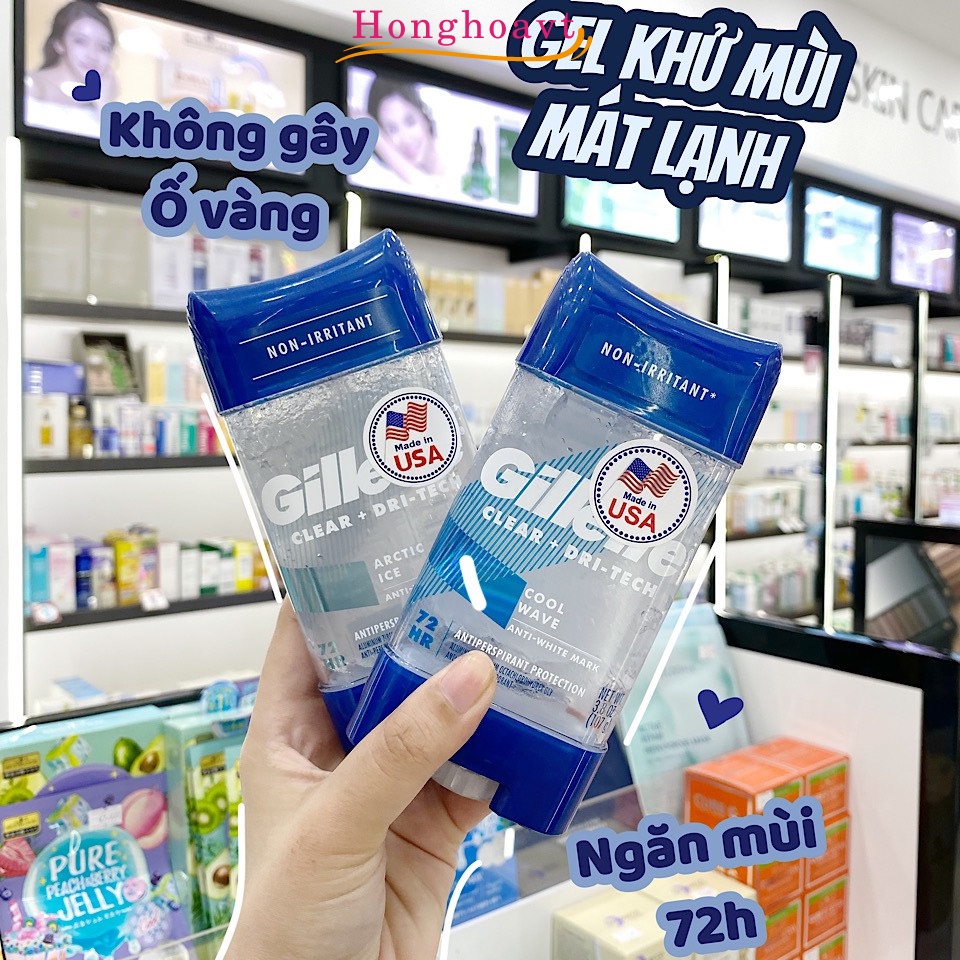 Lăn khử mùi Gillette Clear + Dri-Tech Anti-Perspirant 107g, Gel khử mùi giảm tiết mồ hôi chính hãng Mỹ-honghoavt