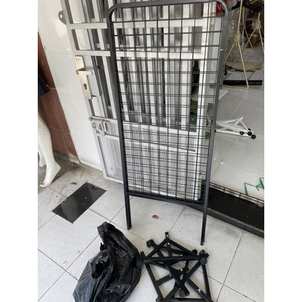 Khung lứoi có chân thich hợp để treo phụ kiện, mũ nón... Kich cỡ: 50x135cm( đã tính luôn chân) Có 2 màu đen và trắng Phần chân có thể tháo rời - Khung lưới treo hàng, có chân - Kích thước: ngang 0.5m, cao 1.35m (tính từ đất, phần chân 20cm) - Ô lưới 5cm, dây lưới 3.5