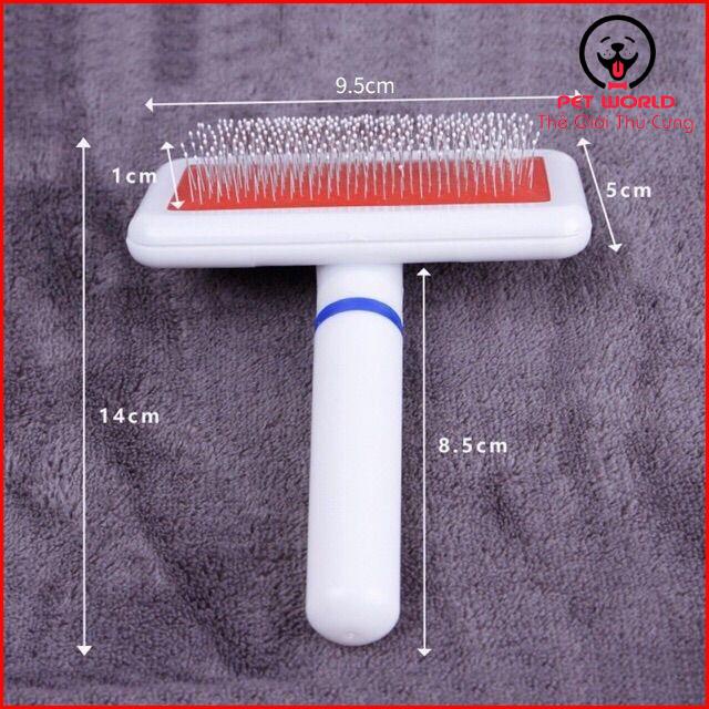 Lược đẩy lông chó mèo Lược chải lông cho chó mèo ( thú cưng) có nút bấm đẩy lông ra khỏi răng lược, chinh phục các loại lông chó mèo ngắn dài các loại chó mèo có vấn đề về rụng lông Cách sử dụng khá đơn giản: Bắt đầu chải từ đầu đến chân 1 cách từ từ và nhẹ nhà