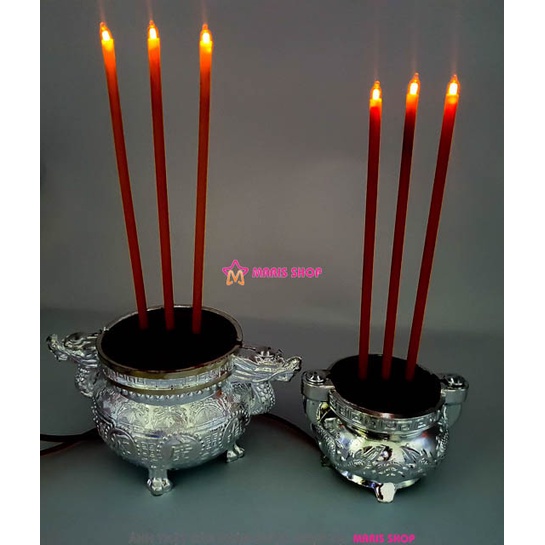 ⏩ LƯ HƯƠNG ĐIỆN TỬ BÀN THỜ THIÊN CHÚA, BÀN THỜ GIA TIÊN BÊN ĐẠO ⏩ Lư hương điện tử cao cấp sử dụng trong nhà. ⏩ Sản phẩm được xi mạ crom Bạc bóng đẹp mắt phục vụ cho việc thờ cúng bên Đạo Thiên Chúa. ⏩ Lư hương được 3 cây nhang điện tử, tạo ánh sáng tự nhiên giống như
