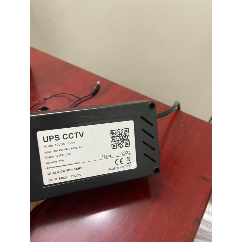 Thông số kỹ thuật : Model : UPS 12V 8AH Điện áp đầu vào : 220V Điện áp đầu ra : 12V-2A Chất liệu vỏ : nhựa màu sắc : đen Xuất xứ : việt nam Bảo hành : 12 tháng Sản phẩm khuyên dùng : các dòng modem, camera, wifi. máy chấm công…….. Thời gian lưu dự tính : 8-10 tiếng lưu hình chuyển động và 3-4 tiếng lưu hình liên tục