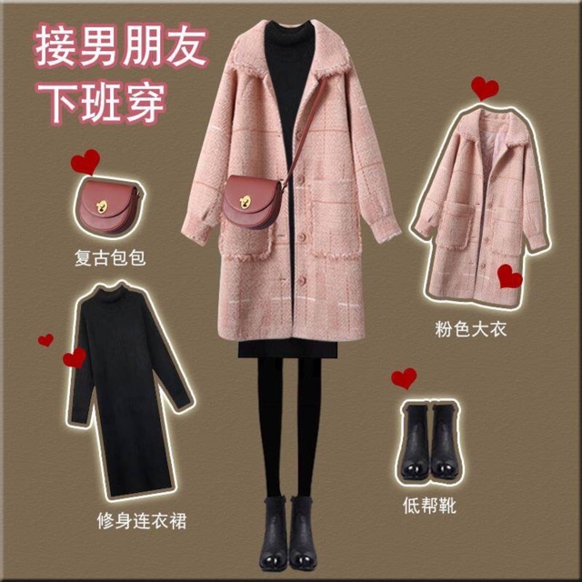 - Mẫu này mình bán cả set gồm áo khoác ngoài + váy len đen , hoặc bán lẻ mẫu áo khoác dạ và váy len nha các nàng .Mẫu áo khoác dạ này bên ngoài lót một lớp lông mềm mịn , tay bo nhẹ mặc lên tôn dáng lắm a. Form này dễ mặc và dễ kết hợp đồ , có 3 tông màu : Hồng , Xanh