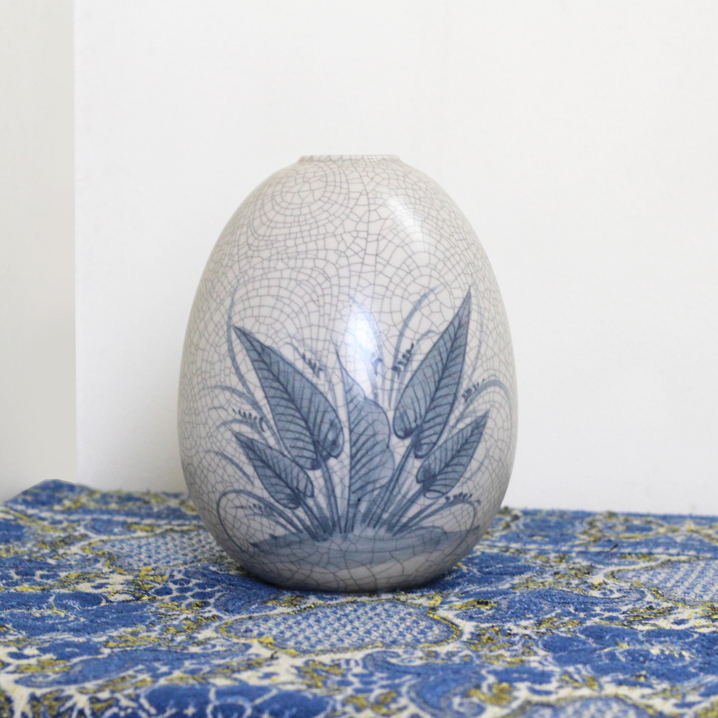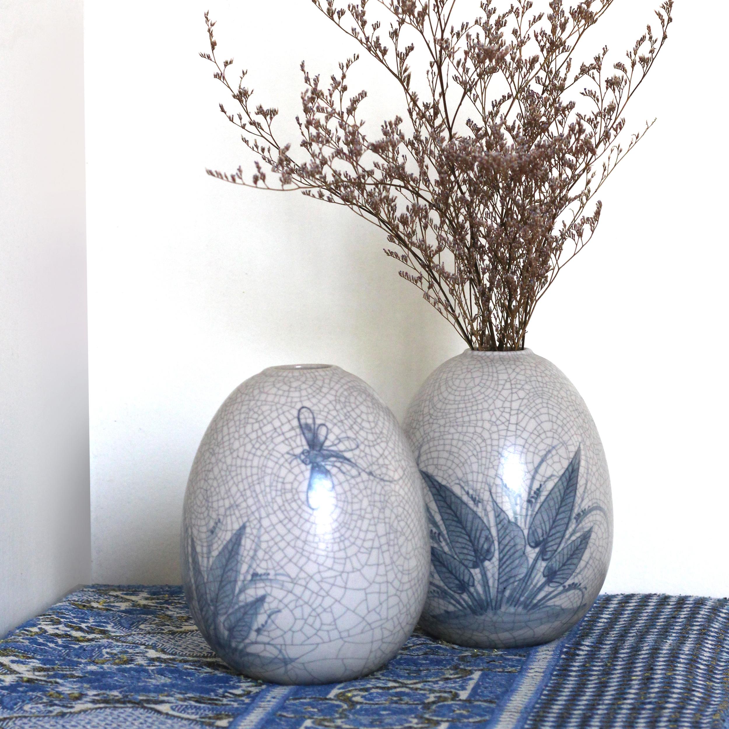 Lọ hoa trứng Bát Tràng men rạn họa tiết chuồn chuồn lá khoai MNV-LHGR01-3