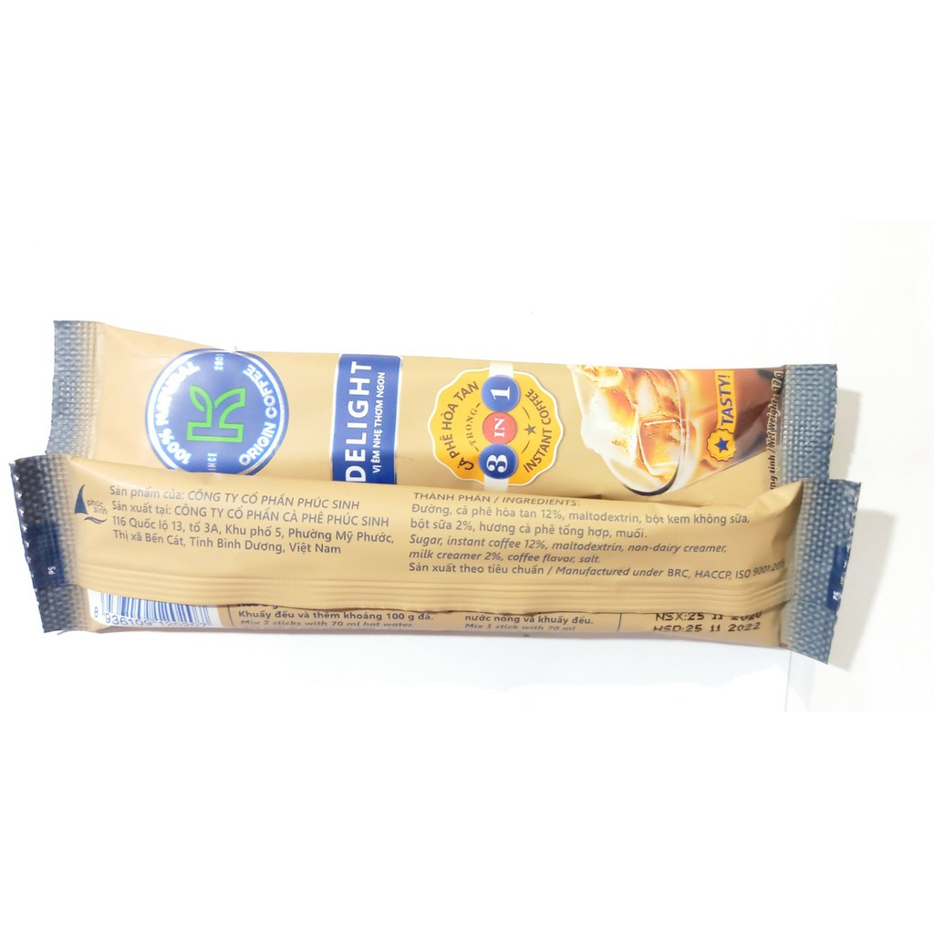 cà phê sữa hòa tan 3 in 1 , K coffee delight 1 lốc (10 gói X 17gr), hsd; 24 tháng từ ngày sx sản phẩm của công ty Phúc sinh- việt nam uống lạnh 2 gói và khấy đều uống nóng 1 gói ĐẶC TÍNH SẢN PHẨM Cà Phê Hòa Tan K Coffee Delight 3in1 được làm từ nguồn nguyên liệu chất lượng với những hạt cà phê sạch, thuần khiết phối hợp hoàn hảo cùng đường, sữa không pha trộn bắp và đậu nành, không hương liệu, không hóa chất độc hại, loại bỏ các tạp chất đảm bảo an toàn cho sức khỏe. Sản phẩm đem đến cho bạn sản phẩm cà phê sữa hòa tan với vị ngọt ngào, thơm béo vừa phải hòa quyện cùng vị đắng, thơm nồng đặc trưng của cà phê giúp bạn đánh thức vị giác, khơi dậy hứng khởi cho ngày làm việc tỉnh táo, tràn đầy năng lượng. : Cà phê dạng hòa tan mang đến sự tiện lợi cho người sử dụng, giúp những người thích cà phê sữa đúng vị có được một ly cà phê sữa như ý nhưng vẫn tiết kiệm được thời gian. Ngoài ra, sản phẩm với từng gói nhỏ trong bao bì đẹp mắt giúp bạn bảo quản dễ dàng hơn đồng thời là món quà tặng ý nghĩa dành tặng những người yêu thương.