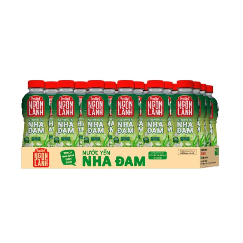 Công dụng: Giúp thanh nhiệt, đẹp da, tăng cường sức đề kháng, bồi bổ sức khỏe. Thích hợp thời tiết nắng nóng ngày hè. Thể tích: 450ml x 1 chai Thành phần: Nước, đường, nha đam (50g/l) tổ yến (10mg/l) mủ trôm, chất điều chỉnh độ acid (E331iii, E327), chất làm dày (E4