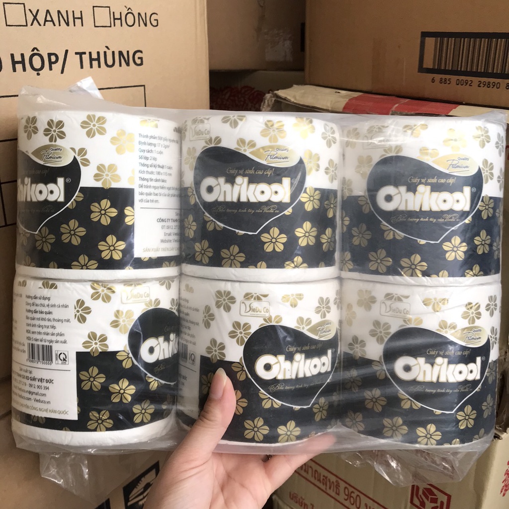 Lốc 6 cuộn giấy vệ sinh cao cấp Chikool không lõi