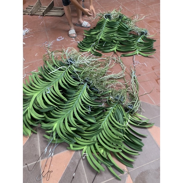 CÂY ĐANG CHO HOA TẾT, ĐANG CÓ NGỒNG HOA RỒI Ạ, VÒI HOA DÀI TO QUÁ ĐẸP, THÂN CÂY DÀI 70-80cm Lan Vanda có hình dáng nổi bật với cụm lá mọc đối xứng, dày xoè rộng sang hai bên như cánh quạt, mỗi lá có chiều dài khoảng 25cm, nhọn dần ở đầu. Hoa Lan Vanda rất to và đẹp,