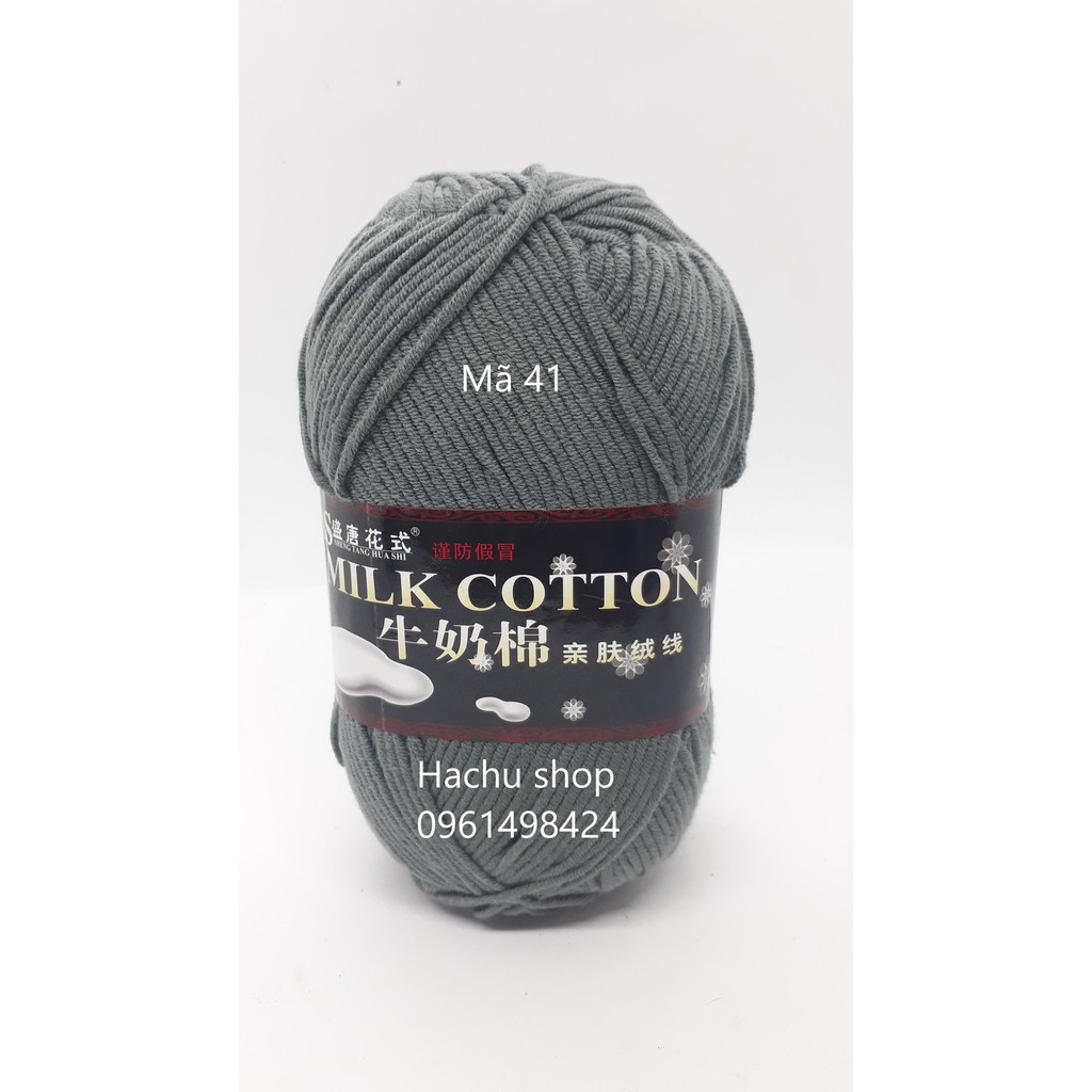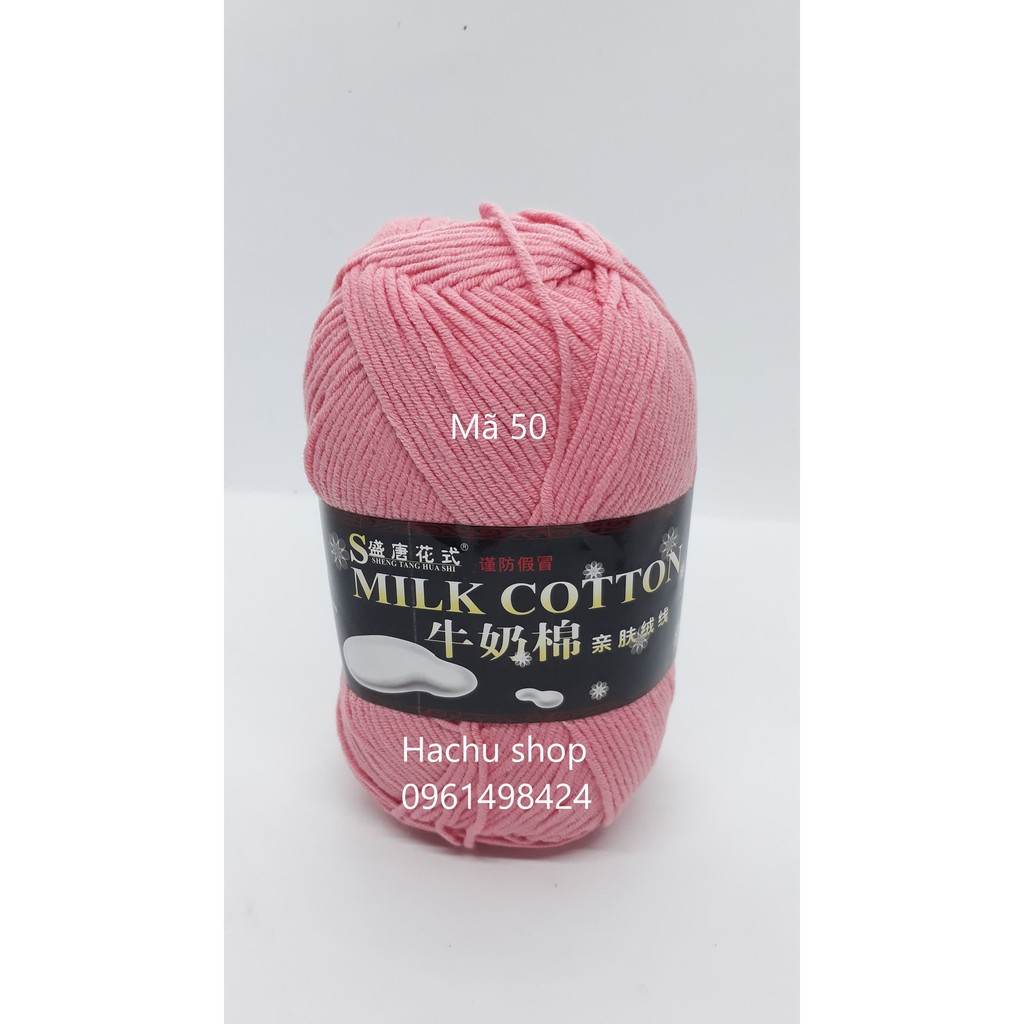 Len milk cotton loại 1, dùng đan móc mũ, áo, giày cho bé. Sợi len mịn, se chặt, màu sắc phong phú và tươi sáng; 1 cuộn 125g. Kim móc 2.5-3mm Kim đan 3.5-4mm FB: Hachu Shop - Len sợi và phụ kiện handmade 0961498424