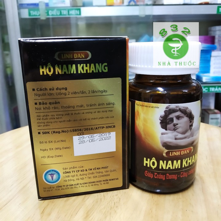 CÔNG DỤNG Giúp bổ thận, tráng dương, tăng cường chức năng sinh lý nam giới, tăng sức khỏe tình dục, rối loạn cương dương, tăng năng lượng hoạt động và sức bền của cơ thể. Phòng và hỗ trợ điều trì mãn dục nam, xuất tinh sớm , sinh tinh, mạnh gân cốt, tăng cường sức khỏe, cải thiện tinh trùng. Dùng tốt cho người yếu sinh lý do stress, mỡ máu hay tiểu dường.Tăng cường miễn dịch. Bệ.nh tim mạch hay cao hu.yết áp cũng có thể dùng. Tuy nhiên tham khảo ý kiến bác sĩ. THÀNH PHẦN Dâm dương hoắc ..................................500mg Ba kích .................................................500mg Bá b.ệnh ................................................200mg Đỗ trọng ...............................................250mg Toả dương ............................................200mg Thục địa ...............................................200 mg Kỳ tử ....................................................200 mg Tá dược vừa đử 1 viên. ĐỐI TƯỢNG DÙNG Những người thận yếu, dương suy, sinh lý kém, di tinh, mộng tinh, xuất tinh sớm, liệt dương, râu tóc bạc sớm. Người hoạt động thể thao trí óc. Sức khỏe toàn thân suy giảm, thận hư gây tiểu đêm nhiều lần, bệnh nhân mỡ mấu hay tiểu đường, stress. CÁCH DÙNG Người lớn: 2 viên x 2 lần/ngày. Liều duy trì: 2 viên x 1 lần/ngày. BẢO QUẢN: Nơi khô ráo, thoáng mát, tráng ánh sáng. QUY CÁCH ĐÓNG GÓI: Hộp x 20 viên Không sử dụng cho người có mẫn cảm với bất kỳ thành phần nào của sản phẩm. Thực phẩm này không phải là thuốc, không có tác dụng thay thế thuốc chữa bệnh. Giới thiệu về NHÀ THUỐC 832 MINH KHAI: Ra đời từ năm 1989, với hơn 30 năm kinh nghiệm, cùng tâm huyết của chủ nhà thuốc và đội ngũ Dược sĩ giỏi chuyên môn, biết đặt mình vào vị trí khách để hiểu rõ nhu cầu quý khách, mang lại sự hài lòng cho quý khách hàng.