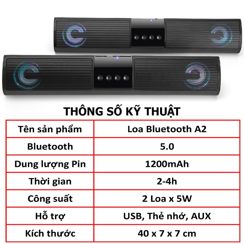 Loa Bluetooth Speaker A2 Dáng Dài 2 Loa Bass Cực Đỉnh Kiểu Dáng Sang Trọng Hỗ Trợ Thẻ Nhớ Đài FM HF23 BOSS SKY
