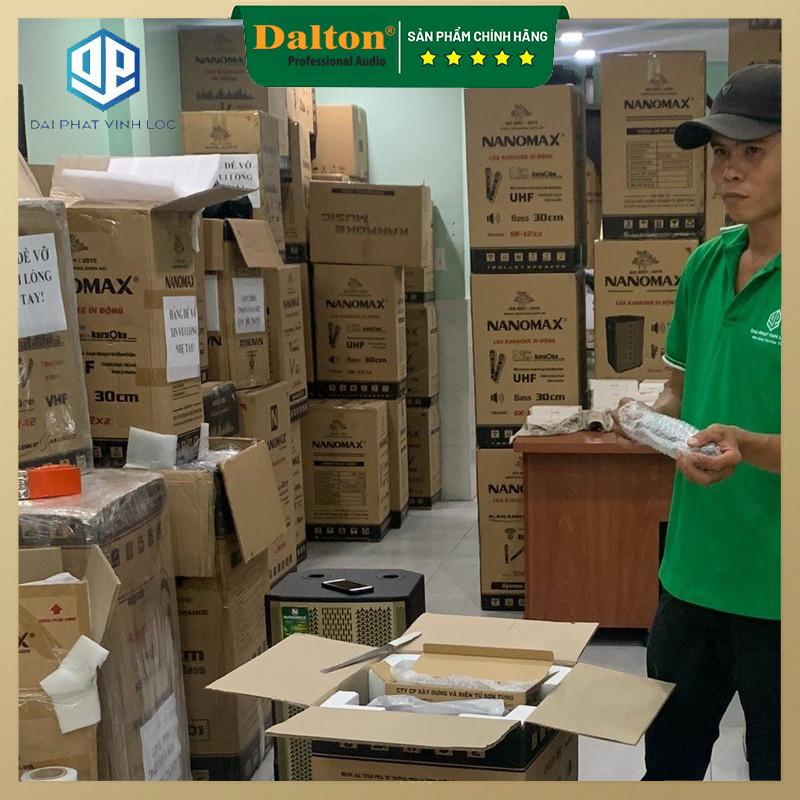 ĐẶC ĐIỂM NỔI BẬT Một sản phẩm loa kéo bình công suất lớn nhất của Dalton hiện nay Một sản phẩm có cách thiết kế hiện đại và đa dụng Một sản phẩm có cấu hình 3 loa chi tiết Với những điểm nổi bật trên, Loa kéo Dalton TS-18G800X xứng tầm là chiếc loa kéo di động có thể đáp ứng trọn vẹn cả nhu cầu karaoke và nghe nhạc ở đa dạng các không gian, từ trong nhà đến ngoài trời, giúp khuấy động bầu không khí của mọi bữa tiệc. ĐI KÈM MICRO KHÔNG DÂY Loa kéo TS-18G800X cũng đi kèm là 02 micro không dây sóng UHF. Việc sử dụng tần số UHF giúp cho việc kết nối và truyền tín hiệu micro được chuẩn và mạnh mẽ hơn. Đặc biệt micro không dây có khả năng chỉnh được tần số kết nối. Việc này giúp cho loa tránh trường hợp trùng lặp tần số micro với các loa khác ở gần. Thân micro được thiết kế bằng chất liệu kim loại nguyên khối cứng cáp, phay hoa văn tinh xảo giúp tạo nét thẩm mỹ và sự sang trọng cho micro. THÔNG SỐ KỸ THUẬT - Công suất: 850W - Loa bass: 18 inch - Loa mid: 5 inch - Loa treb: 1.5 inch - Nguồn điện: 220V / 50Hz - 60Hz - Thời gian sử dụng: 3 – 4 tiếng - Thời gian xạc: 5 tiếng - Bình acquy: có, bình acquy 12V tích hợp bên trong loa - Kết nối: Bluetooth, USB, SD card, AUX, đài FM - Micro đi kèm: 2 micro không dây UHF - Kích thước: (81.5 x 51.5 x 45.2) cm - Trọng lượng: 44 kg ĐIỀU CHỈNH ÂM THANH Loa karaoke Dalton TS-18G800X trang bị thanh tinh chỉnh phía sau loa với các nút chỉnh được ký hiệu rõ ràng cho bạn dễ dàng quan sát và tùy chỉnh chức năng chuẩn xác cho âm thanh của loa và âm thanh micro phù hợp nhất mang đến sự tiện lợi cho người dùng khi sử dụng. Đặc biệt mạch tạo tiếng vang ECHO được sử dụng IC 65831P của Nhật nên tiếng vang ECHO rất ấm và trong Điều chỉnh cho micro gồm 4 nút: V.MIC, HI, MID và LOW (volume, treble, mid, bass) Điều chỉnh echo gồm 2 nút: DELAY và ECHO Điều chỉnh nhạc gồm 3 nút: V. MUSIC, HI và LOW (volume, treble, bass) ⭐️GIỜ LÀM VIỆC CỦA SHOP ✔️ Tất cả các ngày trong tuần từ 7h30 đến 5h ( Nghỉ Chủ Nhật và Các Ngày Lễ ). ✔️ Follow shop để được áp mã giảm giá cho khách hàng thân thiết. ⭐️ CAM KẾT CỦA ĐIỆN MÁY ĐẠI PHÁT VĨNH LỘC - Cung cấp những sản phẩm chính hãng với chất lượng phù hợp với giá tiền - Sản phẩm luôn được test kỹ trước khi đóng gói và vận chuyển