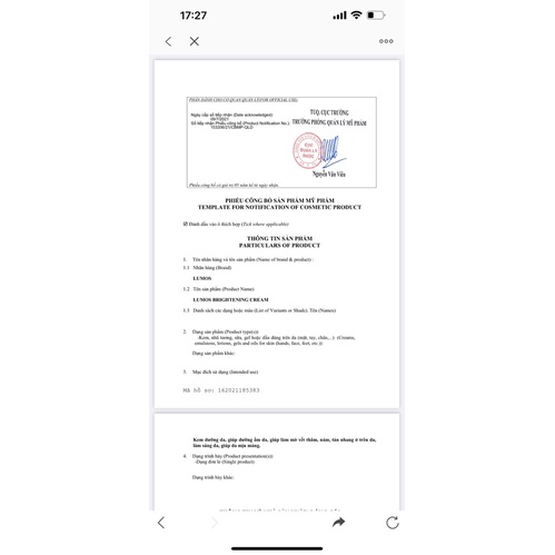 CÔNG DỤNG - Dưỡng da trắng sáng tự nhiên. - Tăng cường hàng rào bảo vệ cho da. - Làm mờ sắc tố Melanin, giải quyết tình trạng nám, tàn nhang, da không đều màu. THÀNH PHẦN Aqua, Glycerin, Butylene Glycol, Betaine, Glycereth-26, Trehalose Propanediol, Alpinia Speciosa Leaf Extract, Magnolia Officinalis Bark Extract, Ulmus Davidiana Root Extract, Schisandra Sphenanthera Extract, Cucumis Sativus (Cucumber) Fruit Extract, Astragalus Membranaceus Extract, Arctium Lappa Root Extract, Camellia Sinensis Leaf Extract, Eucommia Ulmoides Bark Extract, Lycium Barbarum Fruit Extract, Propylene Glycol, Paeonia Suffruticosa Root Extract, Eriobotrya Japonica Leaf Extract, Selaginella Tamariscina Extract, Platycladus Orientalis Leaf Extract, Oligopeptide-1, Sodium Hyaluronate, 1,2-Hexanediol, Paeonia Albiflora Root Extract, Hydroxyacetophenone, Beta-Glucan, Saccharide Hydrolysate, Phenoxyethanol, Ethylhexylglycerin, Carbomer, Triethanolamine, Methylparaben. HƯỚNG DẪN SỬ DỤNG Sử dụng vào buổi sáng và tối sau bước làm sạch da. Lấy một lượng sản phẩm vừa đủ, thoa đều và vỗ nhẹ cho sản phẩm thẩm thấu hoàn toàn vào da. ĐỐI TƯỢNG SỬ DỤNG Da có tình trạng thâm nám, tàn nhang, đốm nâu, đồi mồi, da không đều màu, xỉn màu,... THÔNG TIN THƯƠNG HIỆU Thương hiệu: LUMOS Xuất xứ: Hồng Kông Dung tích: 30ml Hạn sử dụng: 03 năm kể từ ngày sản xuất