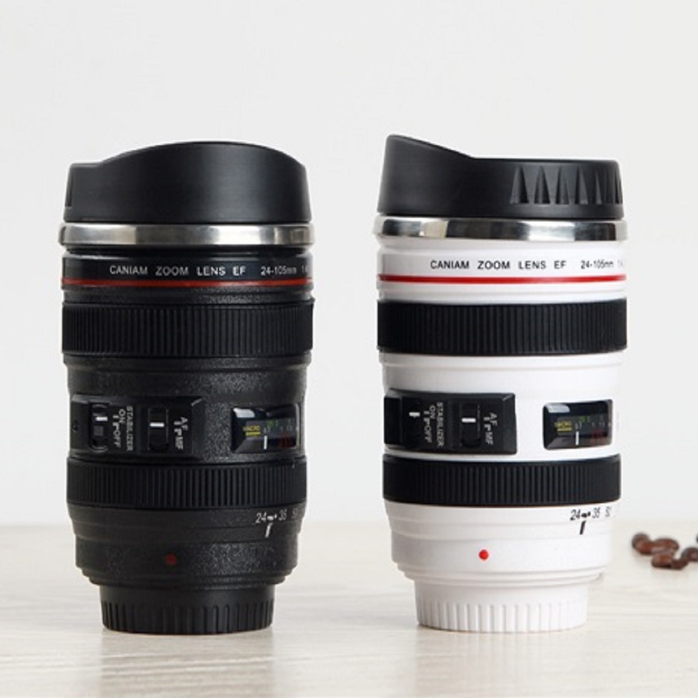 Ly giữ nhiệt inox uống nước cà phê có nắp hình ống kính máy ảnh 400ml mã 22017