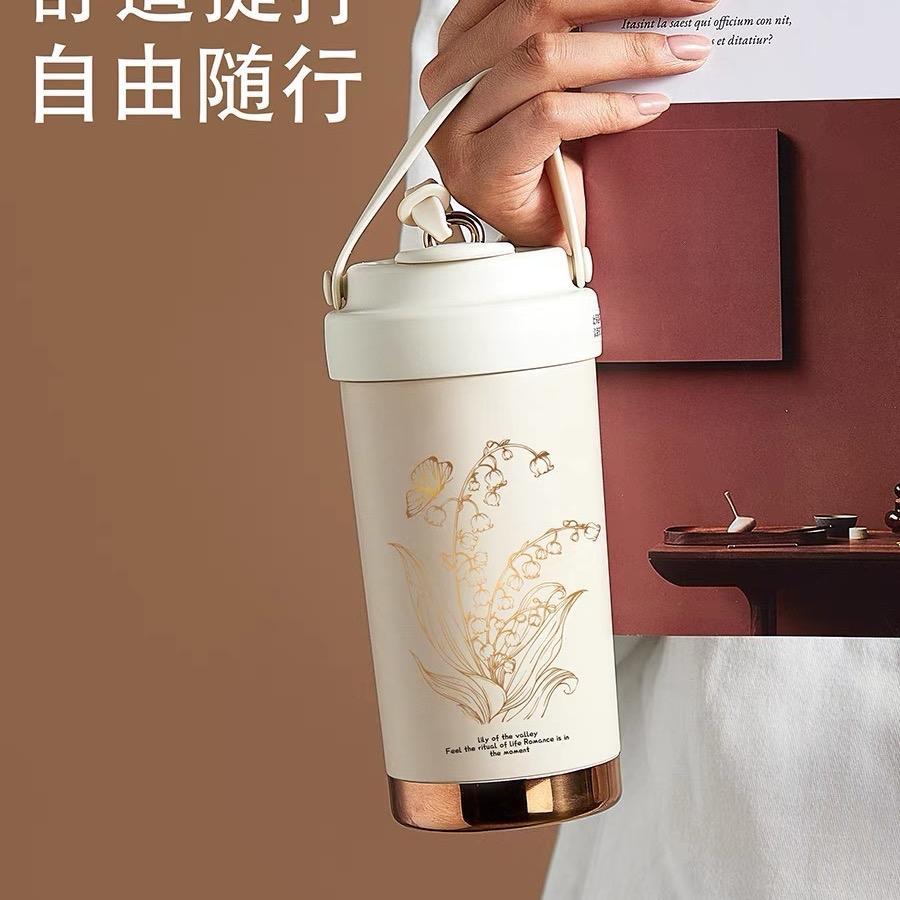 Ly Giữ Nhiệt Lily Lòng Gốm Ceramic Cao Cấp 500ml Giữ Nhiệt Cách Nhiệt 2 Lớp Có Ống Hút , Tặng Túi Trong Suốt và cọ vệ si