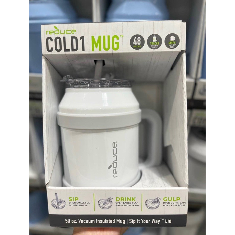 Chỉ giữ lạnh nha quý khách ơi Ly giữ nhiệt thép không gỉ kèm ống hút Reduce Cold1 Mug dung tích 1,5l được làm từ chất liệu thép không gỉ 18/8 cao cấp. Nhựa BPA free an toàn với sức khỏe người dùng. Có khả năng giữ lạnh đến 48 giờ Quy cách đóng gói: 1 ly kèm ống hút Dung tích: 1,5l Xuất xứ: Mỹ Ưu điểm của ly giữ nhiệt thép không gỉ kèm ống hút Reduce Cold1 Mug dung tích 1,5l: - Được làm từ chất liệu thép không gỉ 18/8 cao cấp. Nhựa BPA free an toàn với sức khỏe người dùng. - Thành bình 2 lớp cách nhiệt chân không, giúp giữ lạnh lên đến 48 giờ - Không làm ngưng tụ hơi nước trên thành ly - Miệng ly rộng dễ dàng thêm đá và vệ sinh - Ly có tay cầm chắc chắn - Có thể rửa bằng máy rửa chén #ly #giu #nhiet #thep#khong #gi #kem #ong #hut #reduce #cold1 #mug #hang #my #lygiunhiet #giulanh48gio