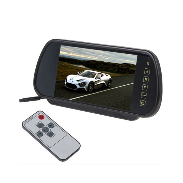 THÔNG TIN SẢN PHẨM: Tên sản phẩm: Màn hình LCD ốp Gương Ô tô HD 7 Inch Kích thước màn hình: 7 Inch Loại TFT LCD Độ phân giải: 840 x 480 Định dạng hiển thị: 4:3 hoặc 16:9 Điện áp sử dụng: DC 9V- 36V Công suất tiêu thụ điện < 7W Hỗ trợ 2 cổng kết nối AV1, AV2 Hỗ trợ