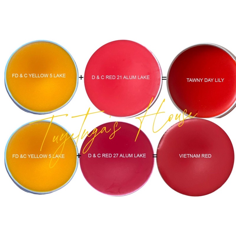 INCI NAME:FD&C Yellow 5 Lake +Mô tả : Nhóm màu: màu vàng (hàm lượng thuốc nhuộm 30-45%). Chất màu có độ tinh khiết cao, được FDA chứng nhận hữu cơ. Đồng nghĩa: Tartrazine. Lớp hóa học: Pyrazolone. Độ tan trong nước: 20g / 100ml. + Màu vàng No.5 FD&C thuộc nhóm màu